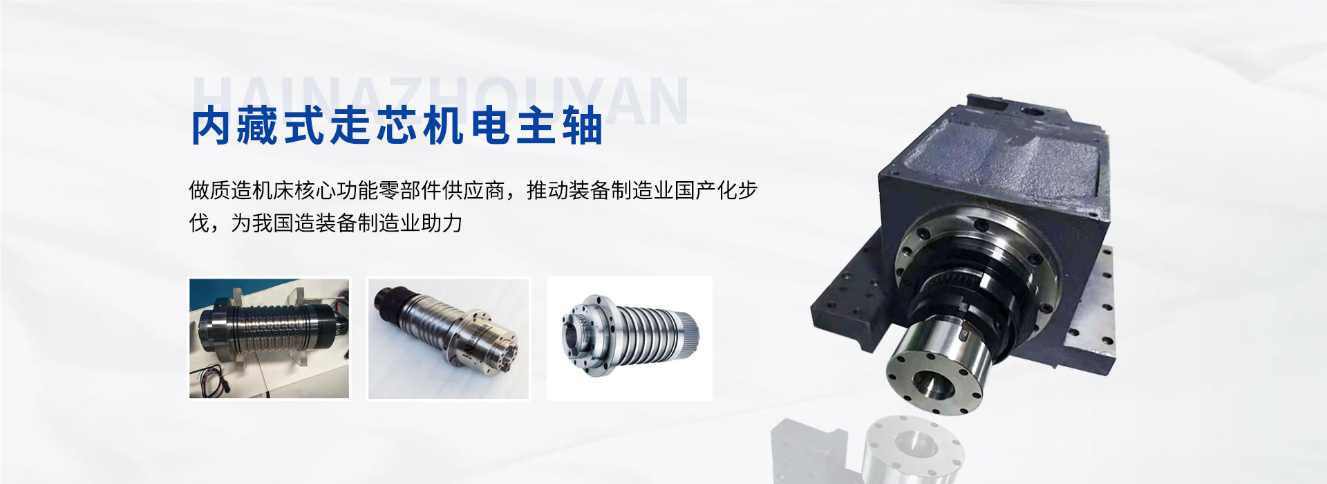 公司致力于為中高數控機床提供自主研發自主品牌的電主軸系列產品,通過堅持不懈的技術攻關和持之以恒的品質管理,嚴格生產工序控制,售前售后的緊密跟蹤逐步形成一套完整成熟的業務體系。為不同類型機床提供主軸設計,現有數控車床主軸單元,數控車床電主軸、加工中 心電主軸及直聯機械主軸,走心車床電主軸,機械主軸,磨床電主軸,光伏主軸等系列主軸產品。